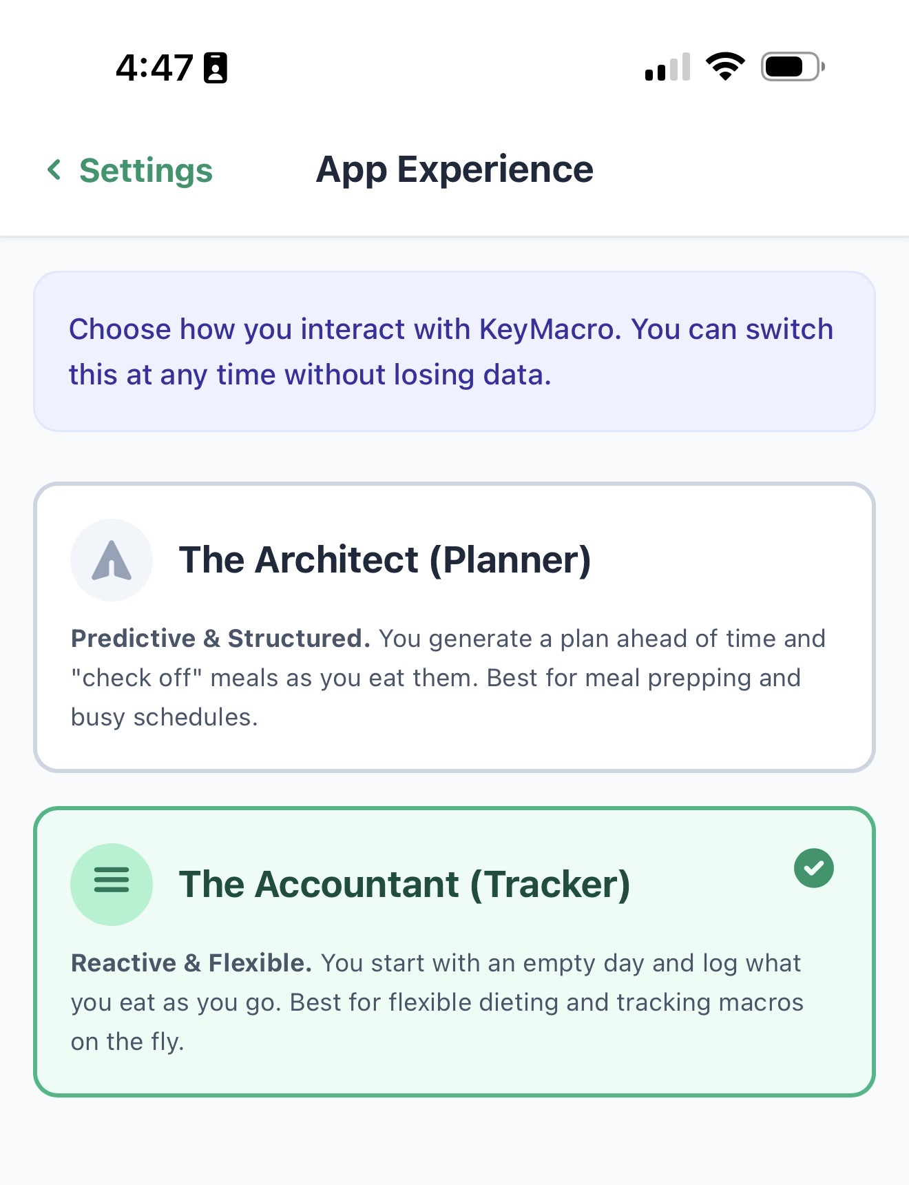 - Accountant Mode: For those who prefer flexible "Macro Tetris." Log as you go with our native tools while our Green Zone logic rewards you for consistency (staying within 90–110% of targets) rather than perfection.
