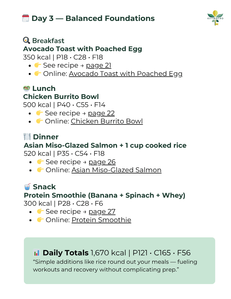 Purchase and download instantly (PDF), then start Monday—or any day—using the weekly list and daily plan. Swap recipes anytime with the index and stay on track with the add-on notes, and use the coach tips to lock in habits you can keep.
