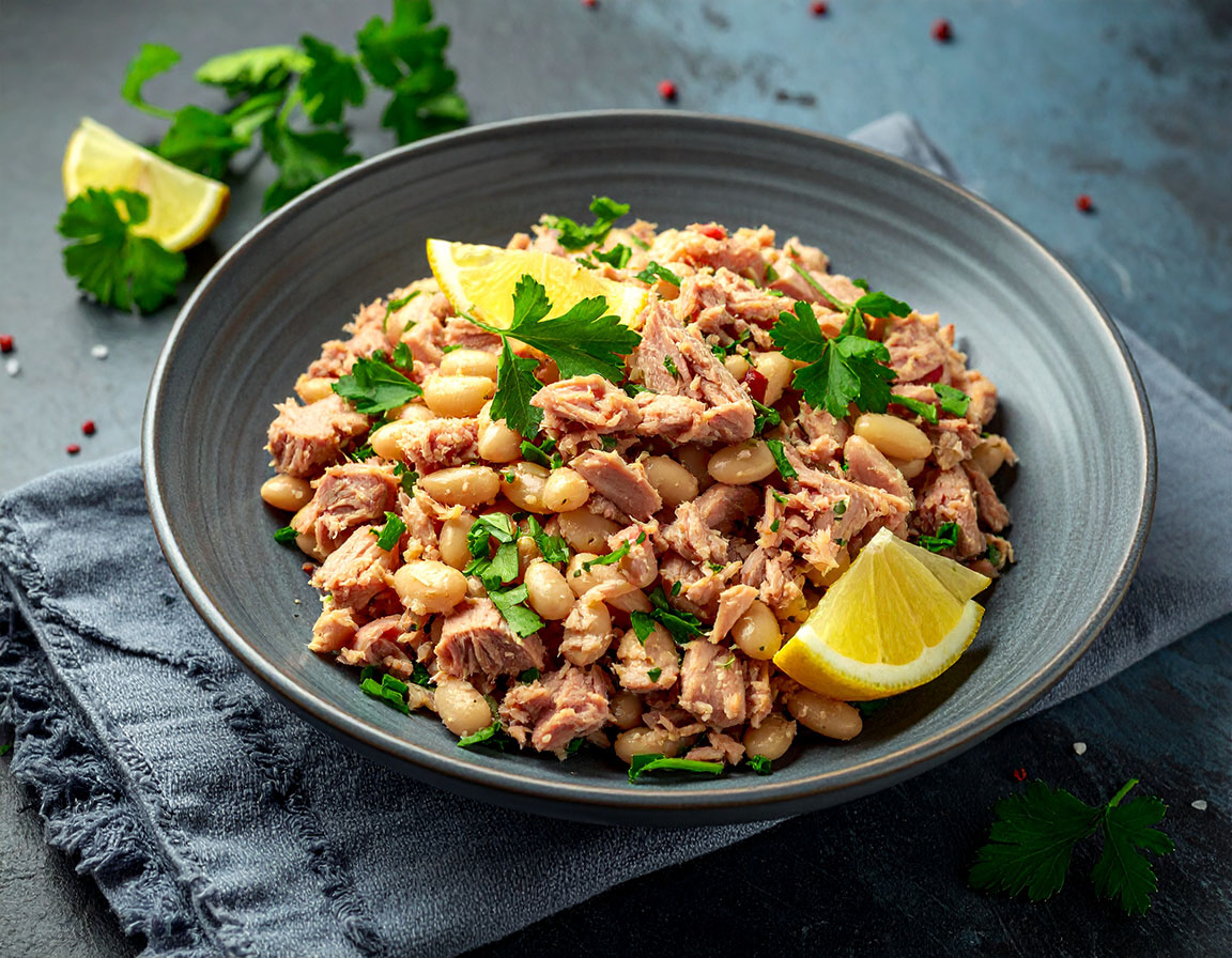 Pantry tuna and cannellini beans tossed with lemon, herbs, and olive oil-a protein-packed, no-cook lunch.