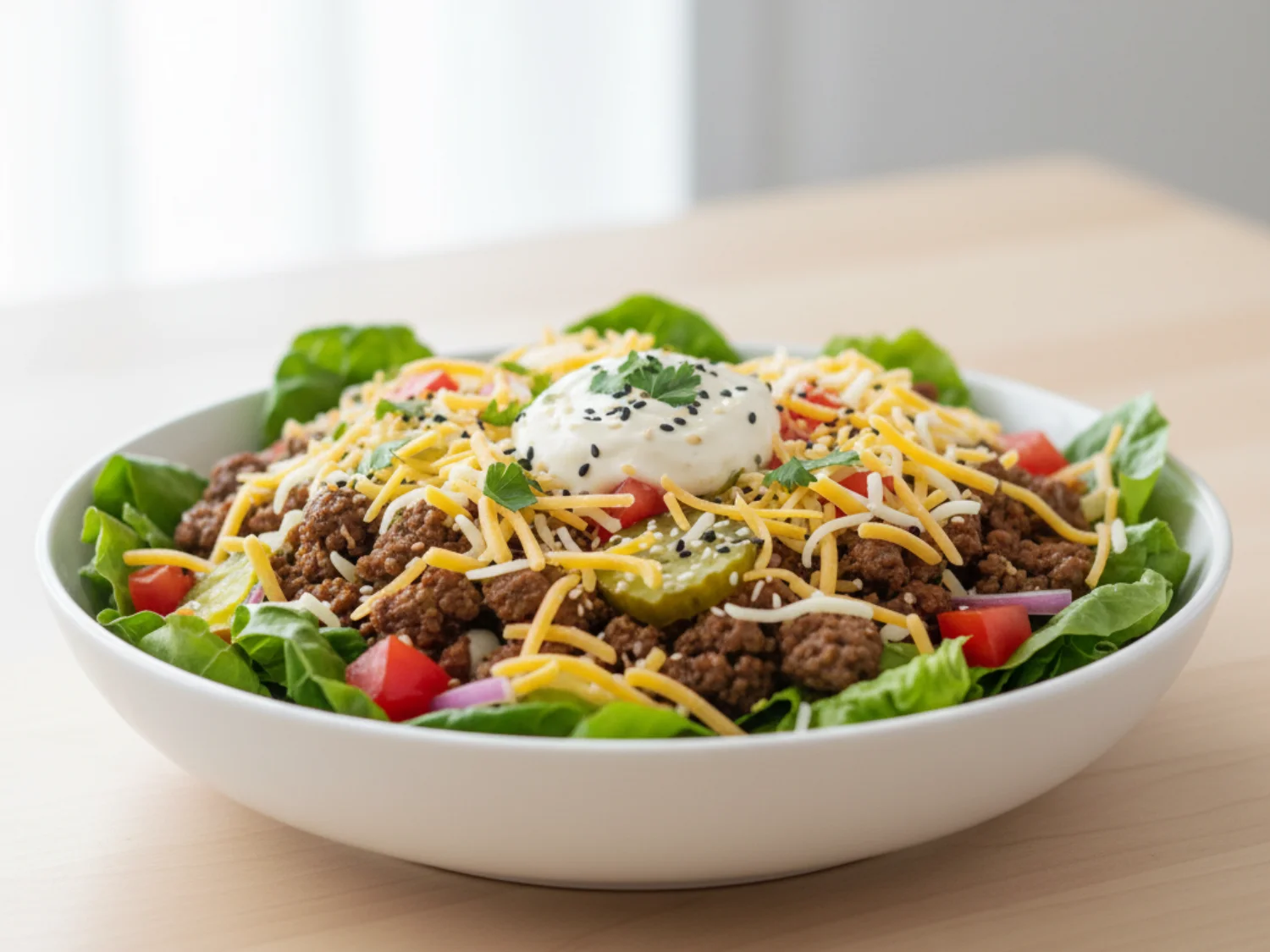 All the savory flavors of a classic cheeseburger in a fresh, crisp, and completely keto-friendly salad bowl.
